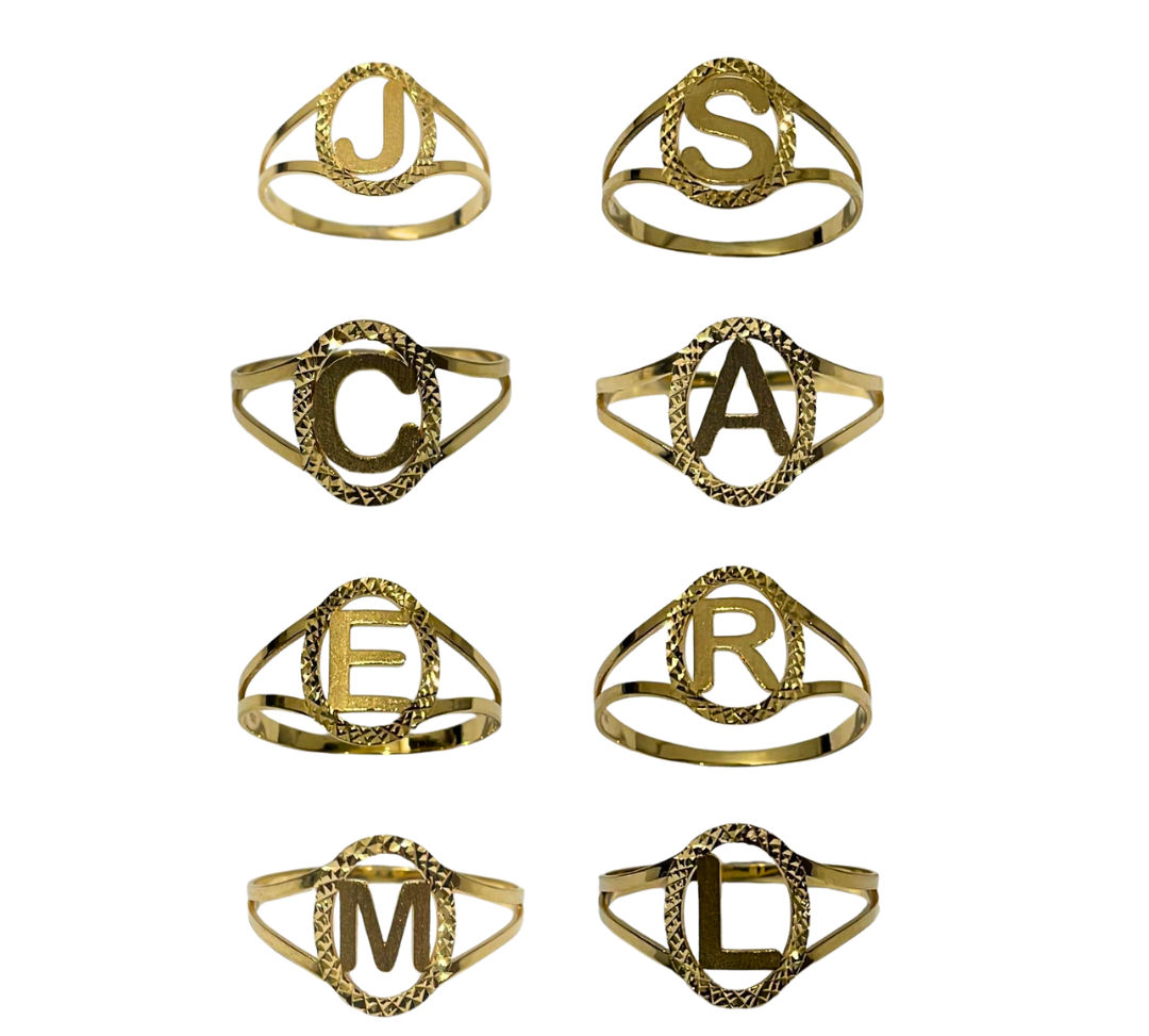 Dê um toque único à sua joia dos sonhos com nossos anéis em ouro 18K, confeccionados com letras personalizadas! 🅰️🅱️🅾️