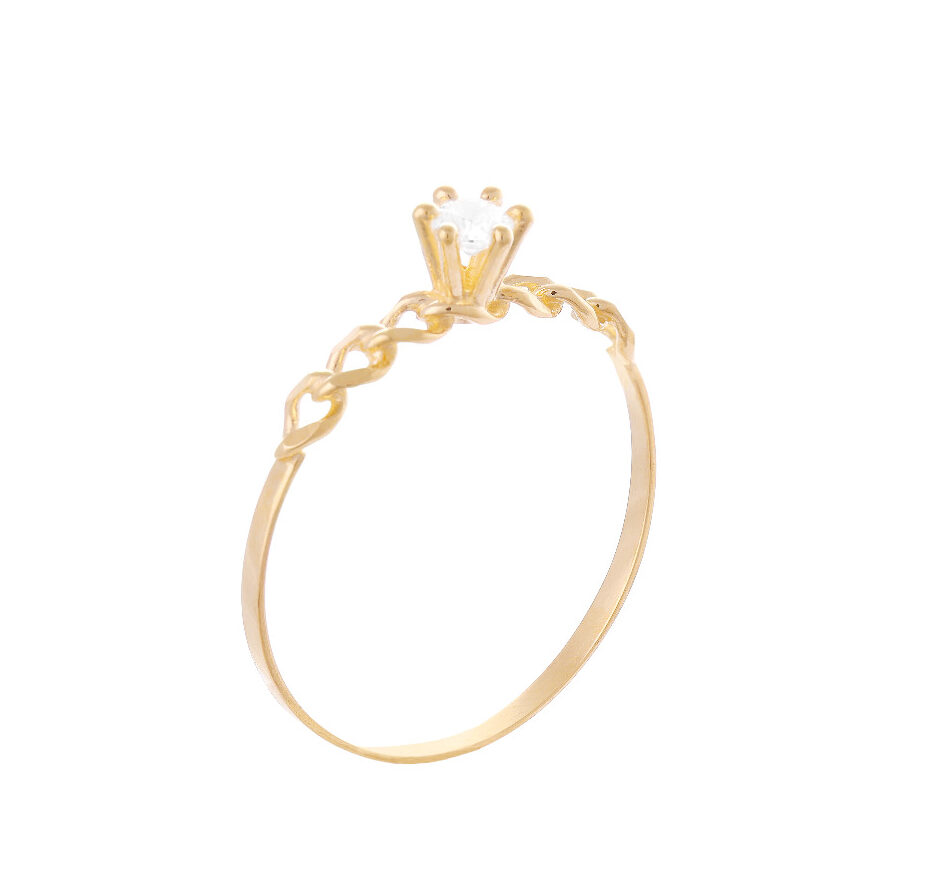Destaque-se com nosso deslumbrante Anel Solitário em Ouro 18k, com pedra central de zircônia, refletindo o brilho único de quem o recebe.