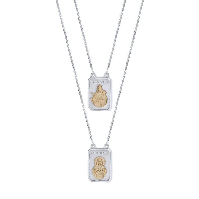 Um Lindo Escapulário de aço com Ouro 18K perfeito para presentear quem amamos,