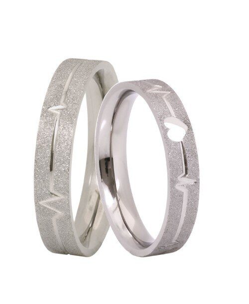 O par de alianças em prata legítima 950 traz um design exclusivo com batimentos cardíacos gravados e acabamento fosco diamantado com canal polido, refletindo a intensidade e o brilho de cada emoção vivida a dois.